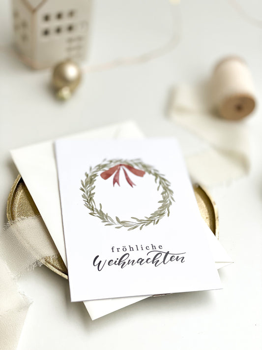 Klappkarte Fröhliche Weihnachten, A 6 mit Einbruchfalze, Blätterkranz