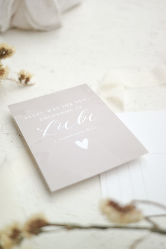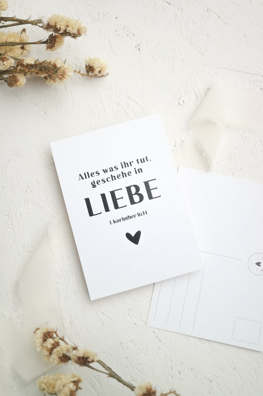 Postkarte "Alles was ihr tut, geschehe in Liebe. 1. Korinther 16,14“ minimalistisch, Jahreslosung 2024