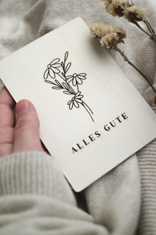 Holz Grußkarte, Alles gute, Blumenmotiv A6