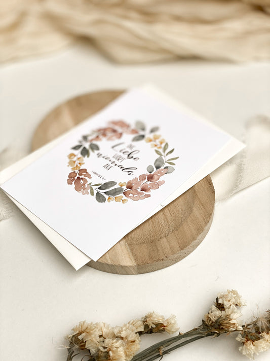 Klappkarte A6 "die Liebe hört niemals auf" mit Briefumschlag, Hochzeitskarte