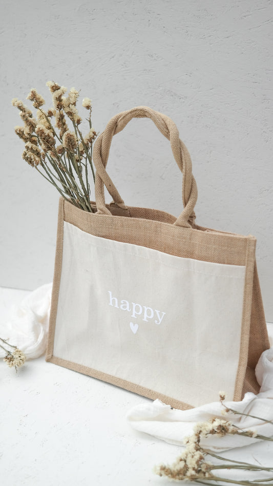 Jutetasche "HAPPY", Geschenktasche, Shopper, Geschenke für Mama und die beste Freundin