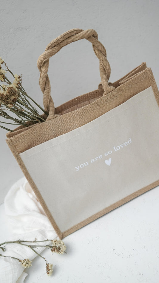 Jutetasche "YOU ARE SO LOVED", Geschenktasche, Shopper, Geschenke für Mama und die beste Freundin