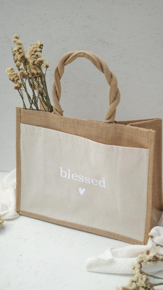Jutetasche "BLESSED", Geschenktasche, Shopper, Geschenke für Mama und die beste Freundin